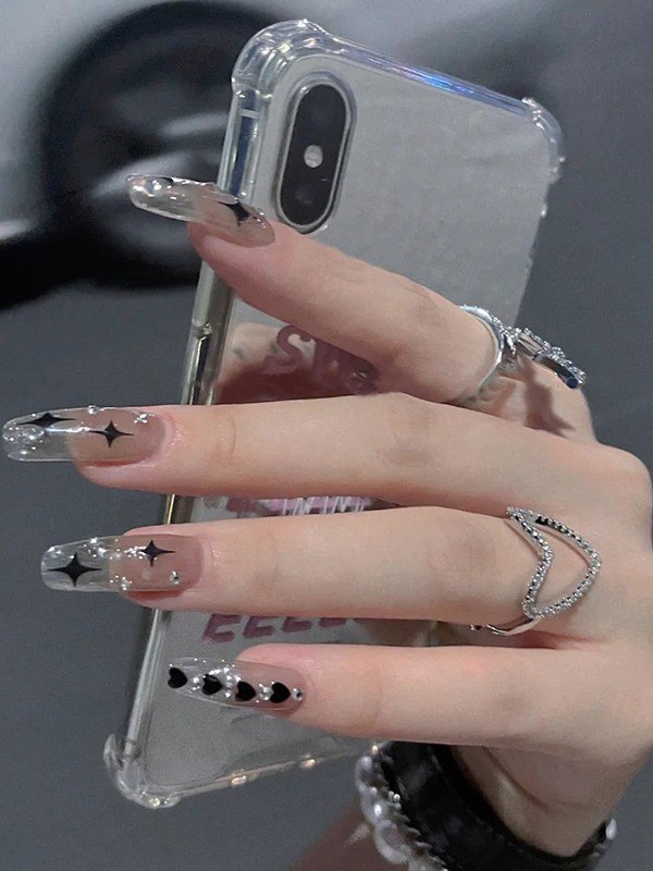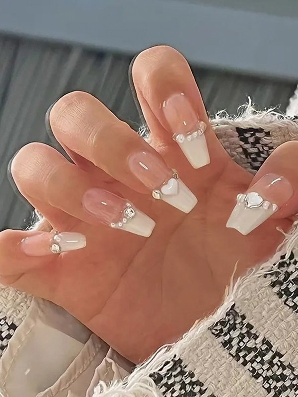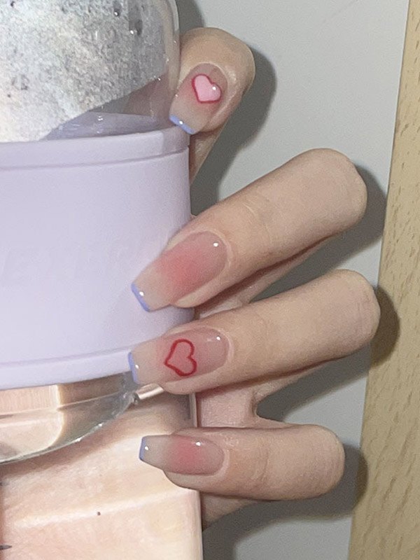24 uñas con diseño de corazón dulce.