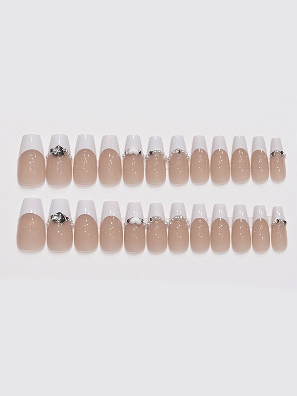 Diseño: Con 12 tamaños incluidos por un juego, presenta un corazón y una perla de imitación adornada en las uñas, y tiene un diseño de pegamento de uñas postizas.