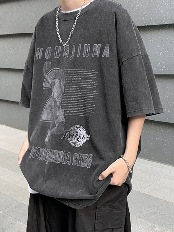 Camiseta extragrande de manga corta con estampado de letras para hombre