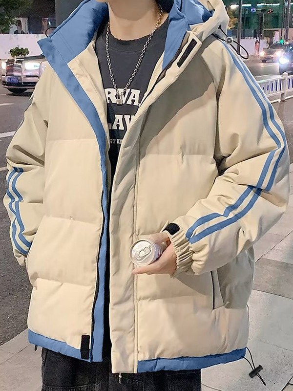 Descripción: esta cálida chaqueta de invierno para adolescentes tiene un estilo de panel en contraste, presenta rayas en contraste en las mangas, con detalle de cordón ajustable, puños elásticos, bolsillos laterales delanteros y cierre de velcro en la parte delantera.