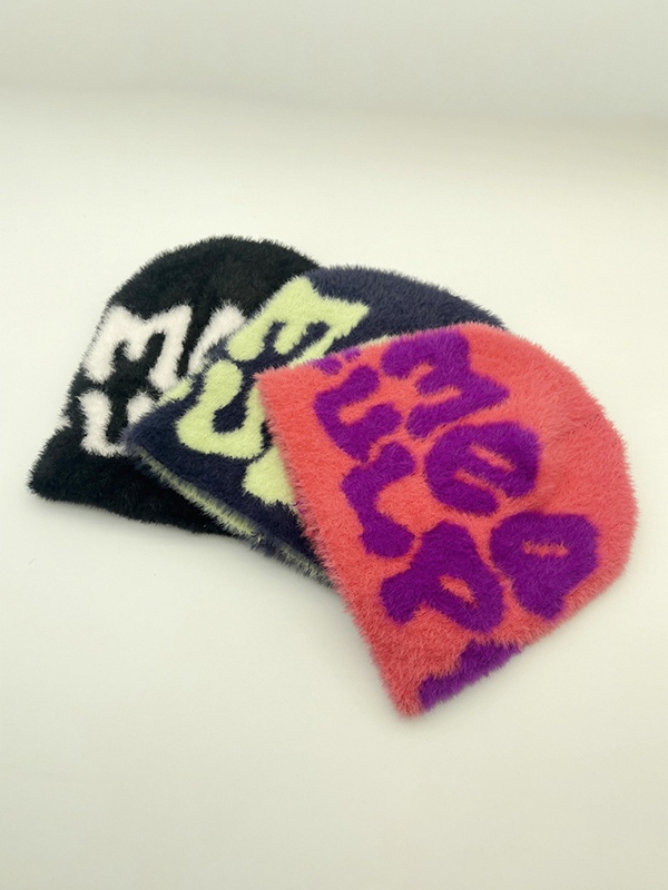 Gorro Beanie de felpa con estampado de letras en contraste de colores
