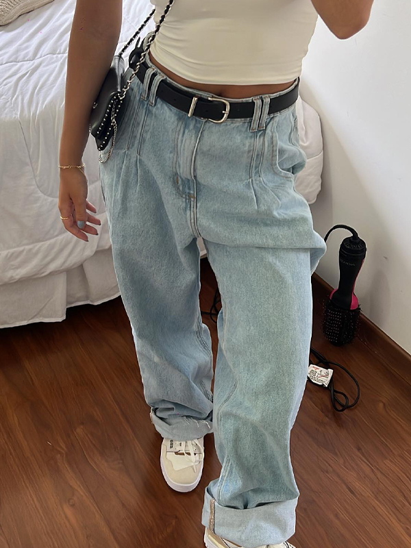 Sé el primero en valorar “Vaqueros boyfriend holgados de color azul claro”